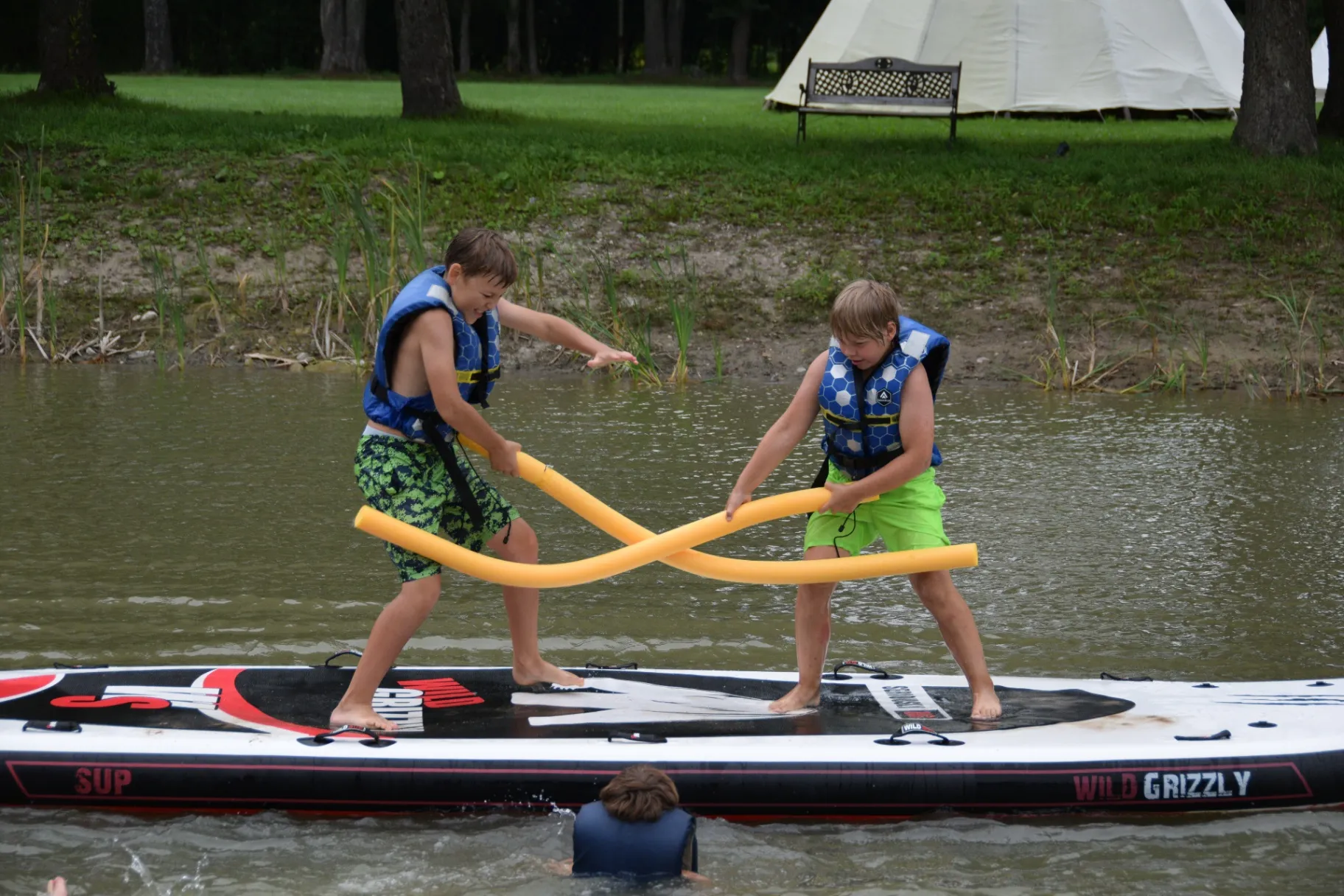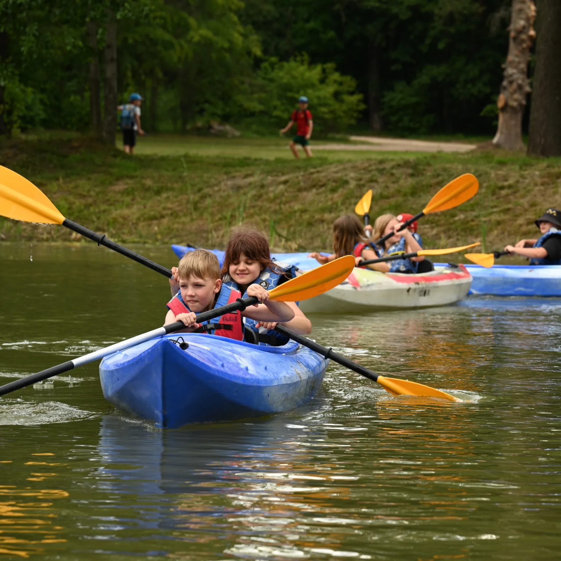 - Stovyklos programa bei inventorius: baidarės, kanojos, irklentės, saugaus plaukiojimo priemonės, alpinizmo inventorius, išgyvenimo gamtoje priemonės, šaudymo iš lankų inventorius, komandos formavimo priemonės ir kt.